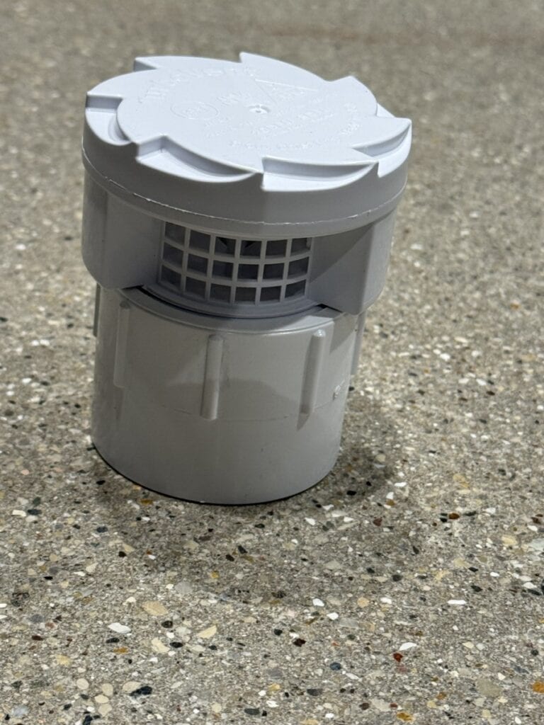 If you’ve never seen one before, an air admittance valve is a small mechanical vent that opens to let air in and closes to keep sewer gases out.